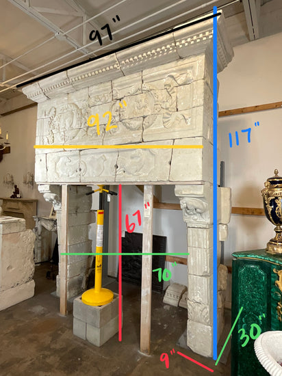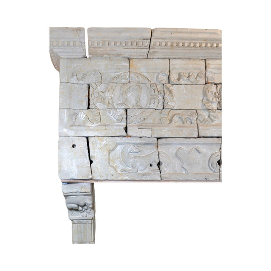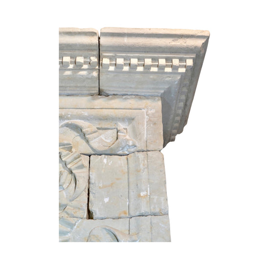 Originating from the storied Loire Valley in France, this monumental 17th-century mantel showcases the artistry and grandeur of early European craftsmanship. Carved from limestone, its surface bears a richly aged stone patina developed over centuries.