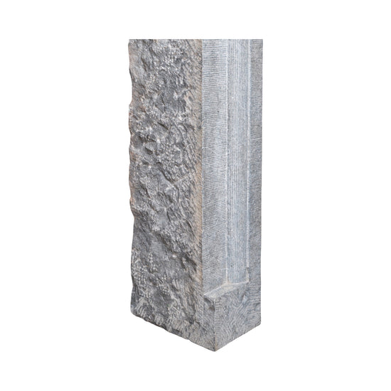 A reclaimed 19th-century bluestone mantel from Belgium. Hand-cut with clean lines and a restrained, architectural profile, this piece shows visible chisel marks, natural surface wear, and patina developed over time. The contrast between the tooled faces and rougher sides highlights its original craftsmanship and age. Durable and timeless, bluestone makes this mantel suitable for both interior and exterior applications, from fireplaces to garden or courtyard installations.