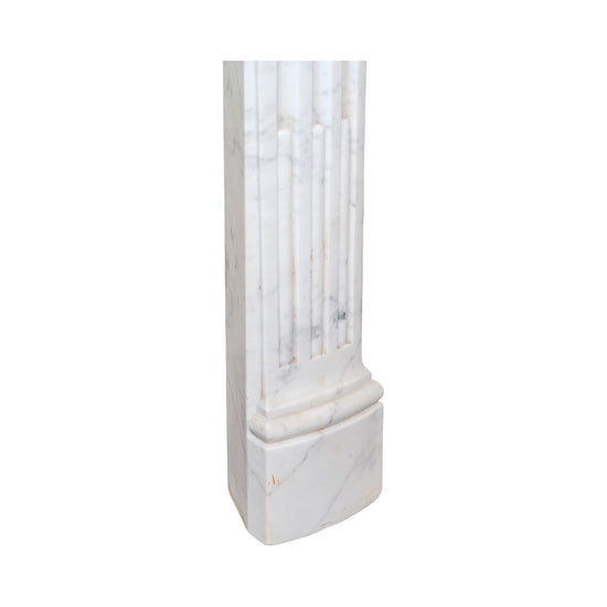 The legs are elegantly shaped with vertical fluting, giving the piece both movement and structure. Its molded shelf follows the gentle curves of the frieze, balancing architectural form with decorative detail.