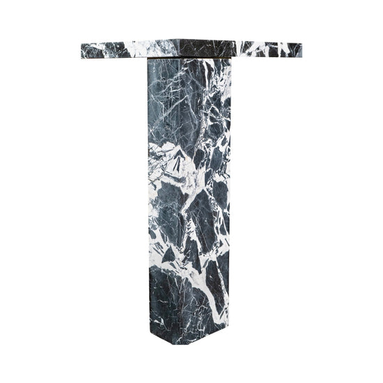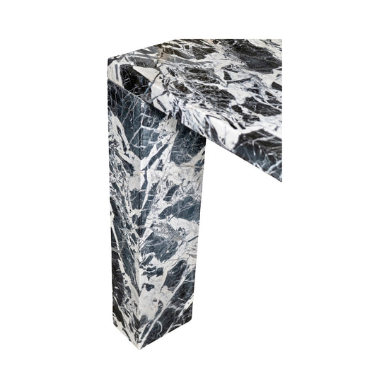 Crafted in Italy in the 1920s, this reclaimed antique table is made from Grand Antique d’Aubert marble, known for its dramatic black-and-white patterning and bold, fractured veining. The table’s clean, geometric silhouette is shaped in a classic Parsons-style form, giving the striking stone a modern, sculptural presence. Its crisp lines, thick top, and solid block legs let the marble’s high-contrast pattern take center stage. Reclaimed and fully hand-crafted, it’s a rare piece that blends early 20th-century design with the timeless impact of one of Europe’s most expressive marbles.