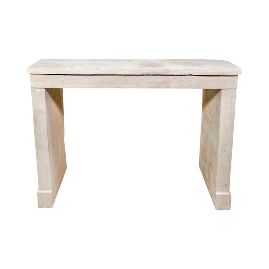 Reclaimed antique limestone mantel from a 19th-century French farmhouse. This piece features beautiful aging and character throughout, with natural wear that highlights its history and timeless appeal.