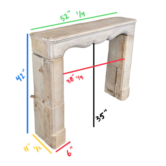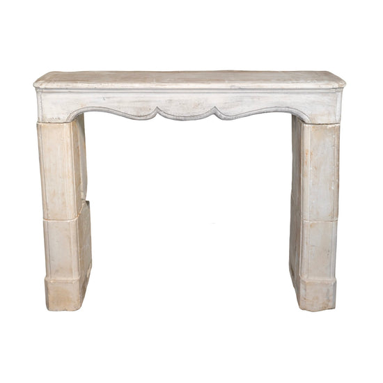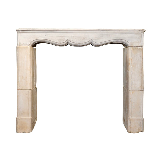 Hand-carved in France during the 18th century, this limestone mantel features a gentle scalloped frieze and clean paneled legs. Its surface shows natural wear, softened edges, and a warm patina that’s developed over time. Reclaimed and full of character, it carries the quiet beauty that only age can bring.