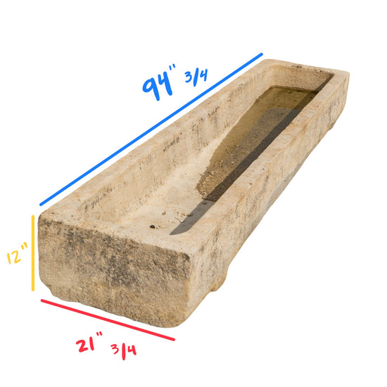 Hand-carved in France during the 18th century, this antique trough is crafted from solid limestone and reclaimed for modern use. Its elongated, wide form features a single drainage hole, making it practical for use as a planter, fountain base, or water feature. The stone bears a natural patina with weathered texture, showcasing centuries of use and character. Both functional and sculptural, it’s a versatile piece of architectural history that adapts beautifully to contemporary landscapes or interiors.