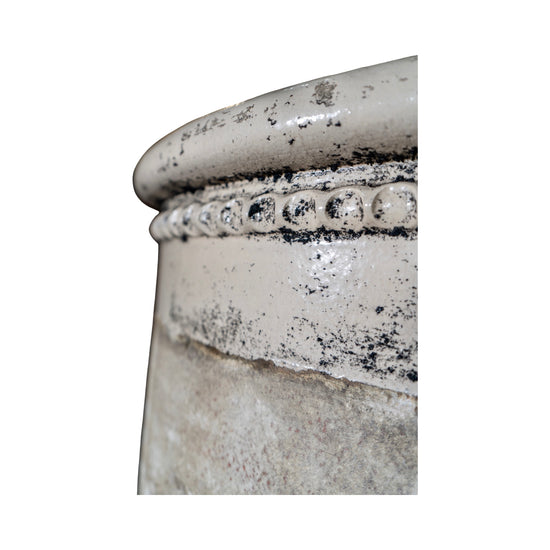 This contemporary Bugadier-style planter is crafted in France using the traditional rope-turned method, giving the vessel its classic hand-thrown character. Made from terracotta, it features a wide opening ideal for planting or display. The rim is finished in a soft ivory glaze, adding a refined contrast to the lower half, which showcases a natural patina wash for a gently aged look. A timeless form rooted in French utility pottery, reimagined for modern spaces.