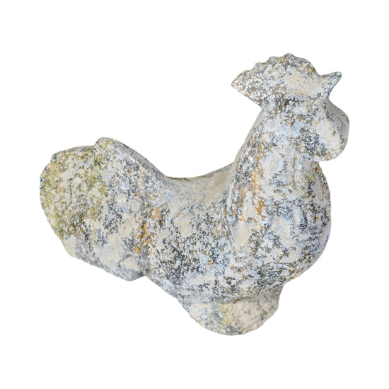 A contemporary rooster statue from France, crafted from a reconstituted stone composite that gives a naturally weathered finish. A striking accent, perfect for adding character to any outdoor space.