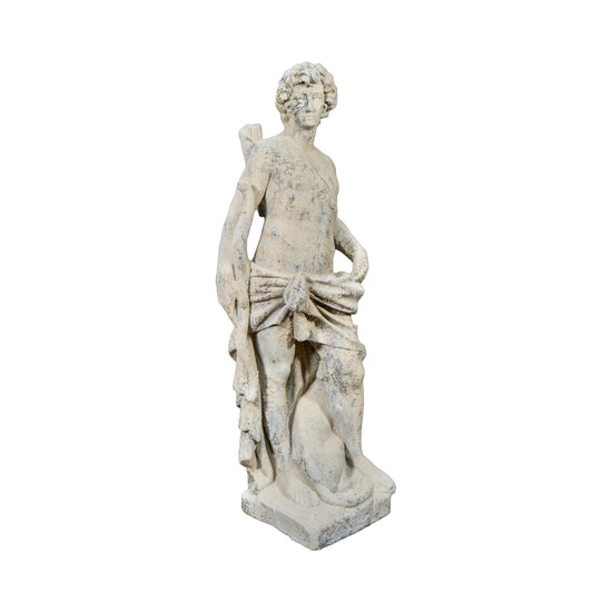 A striking representation of Apollo, the Greek god of music, poetry, and light, this reconstituted stone statue carries a distinctly Florentine influence in its sculptural language. The figure is gracefully posed, draped in classical robes, with a quiver resting over the shoulder—symbolizing Apollo’s mythological ties to archery.