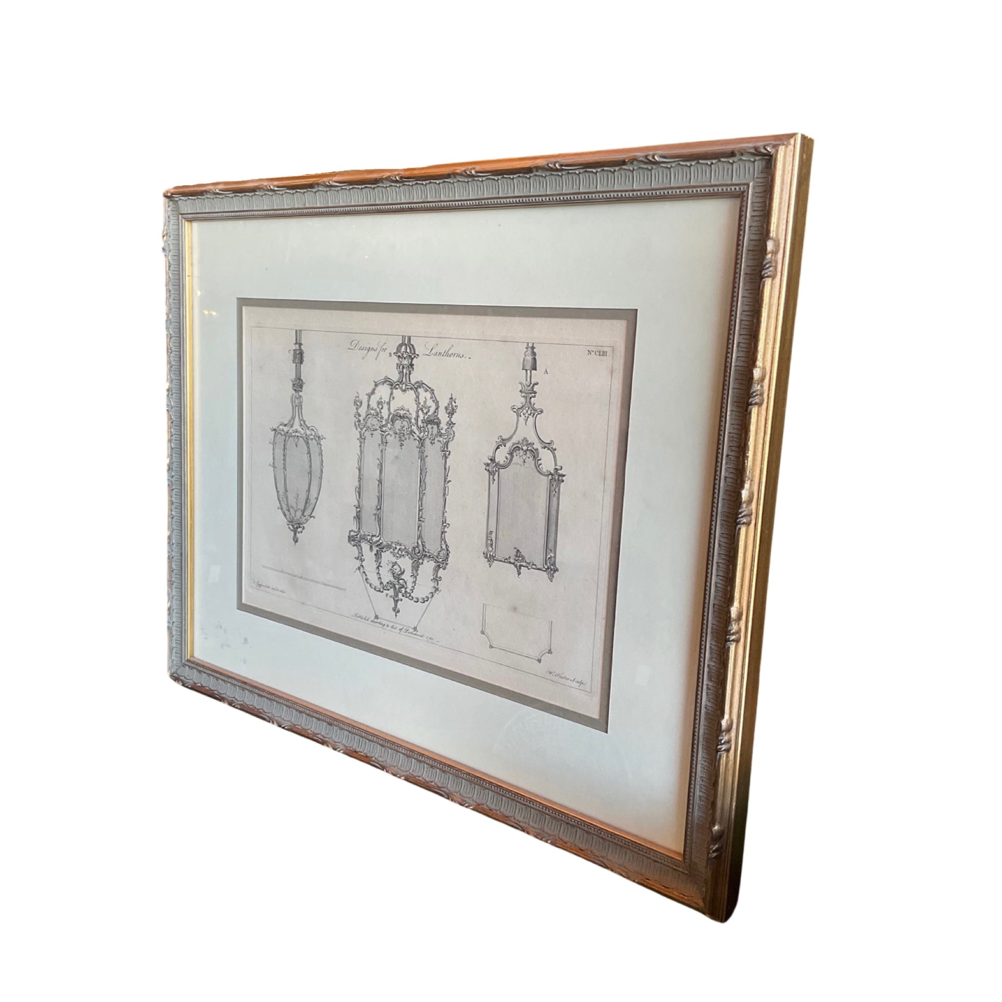 Framed Architectural sketch print of a Fireplace. Circa, 17th century. Originates from France. Signed and dated.