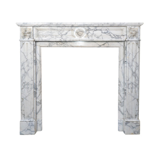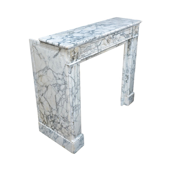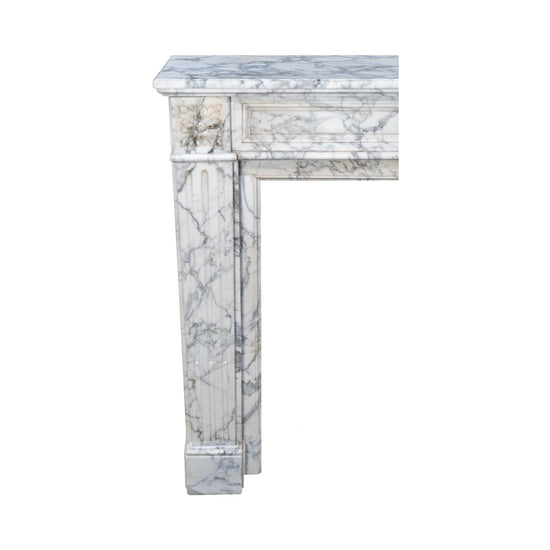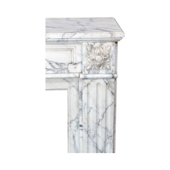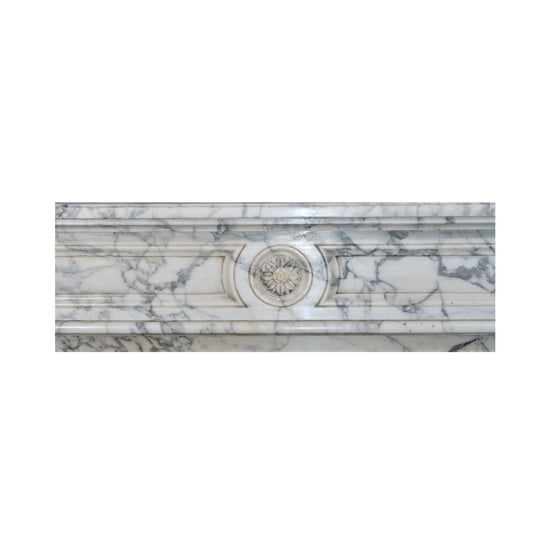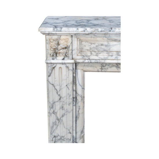 Expertly crafted from luxurious French White Veined Carrara Marble, this mantel exudes elegance and sophistication. With intricate carved floral motifs and bolection style carvings, it is a stunning representation of the Louis XVI style. Dating back to the 1860s, this mantel is a timeless addition to any home, adding character and charm to any fireplace.