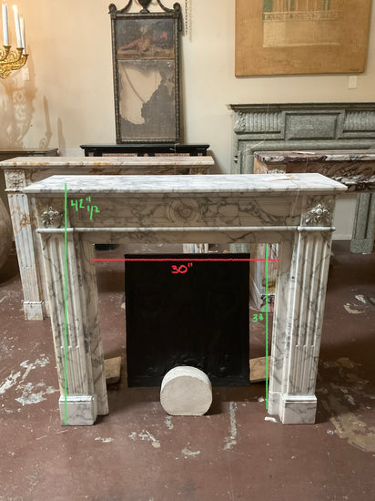 Antique French White Carrara Marble Mantel (M-W2LP)