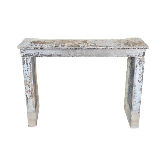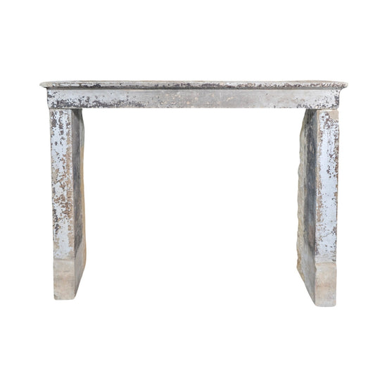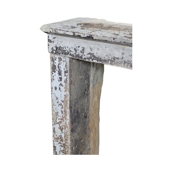A charmingly petite bluestone mantel, originating from Belgium and dating back to the 1780s. Reclaimed from a historic farmhouse, this mantel carries a rich story of its past. Once painted by its original owner, the peeling remnants of paint now reveal a beautifully weathered surface, exuding an antique and rustic charm that speaks to its centuries-old heritage.