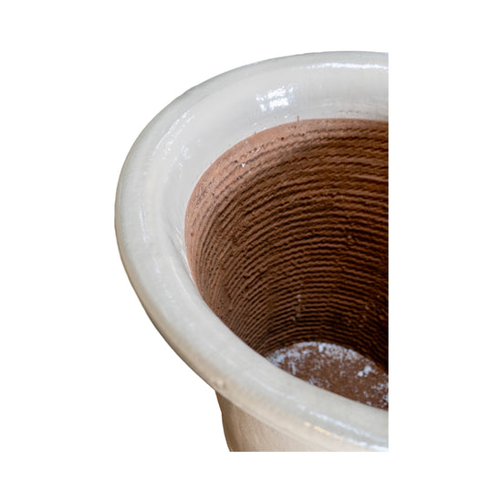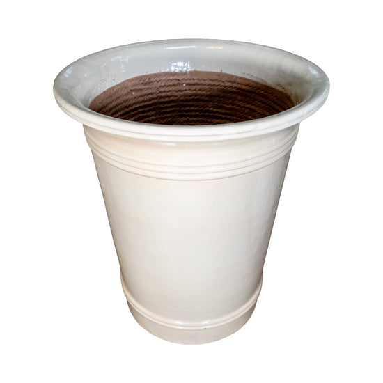 A contemporary vase-style planter from France, handcrafted from terracotta and finished with an ivory enamel glaze. Inspired by Art Deco design, it reflects the French pursuit of harmony between modernism and tradition. Made using the traditional rope-thrown technique, each piece embodies artisanal craftsmanship. Suitable for both indoor and outdoor use.