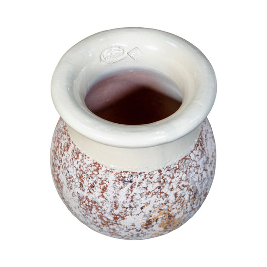 A handmade oil jar from France, small in size and contemporary in craftsmanship. Each piece is one-of-a-kind—hand-turned based on the potter’s inspiration, featuring an ivory enamel collar and a patinated finish. Every jar bears an authentic maker’s stamp, serving as a seal of provenance. Suitable for both indoor and outdoor use.