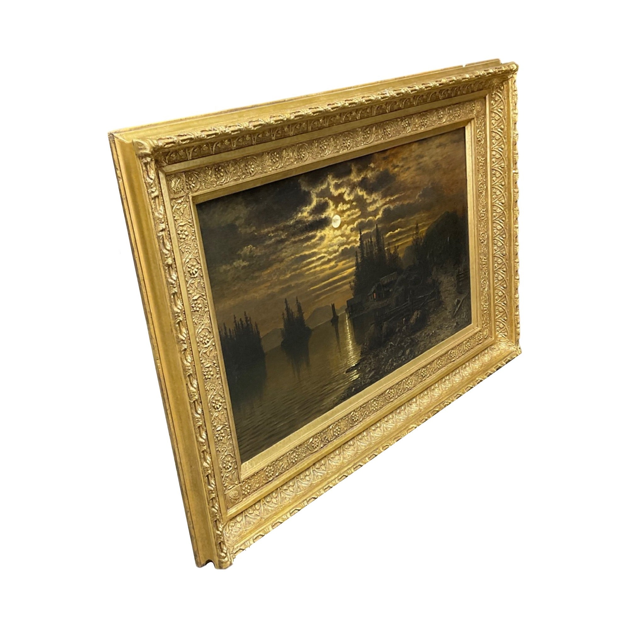 This French Gold Leaf Framed Painting is a timeless piece of art featuring an outdoor scenery by the shore, painted in the 19th century. This unique artwork is framed with gold leaf, preserving its original beauty and bringing a luxury feel to any interior. The painting is signed and makes an ideal choice for art enthusiasts.