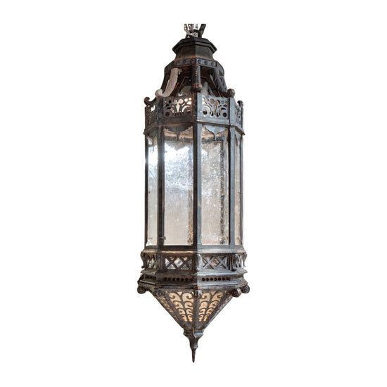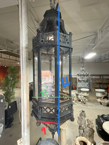 Crafted in France during the 1930s, this large iron lantern is the perfect addition to any space, wired and ready to be lit. Experience the timeless elegance and durability of this classic piece, perfect for adding a touch of French charm to your home.