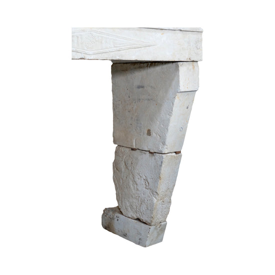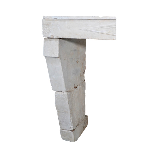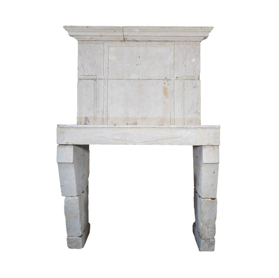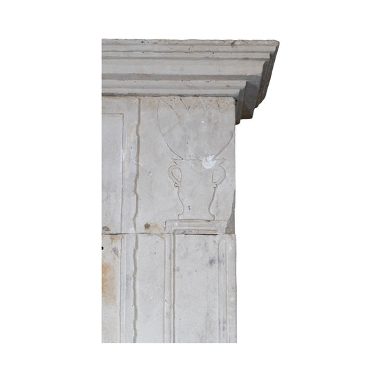 An elegantly reclaimed 18th century French Limestone fireplace mantel. Intricately carved with vessel urn motifs, this fireplace brings a touch of sophistication and history to any room. Imported directly from France, it's the perfect centerpiece for your mantel.