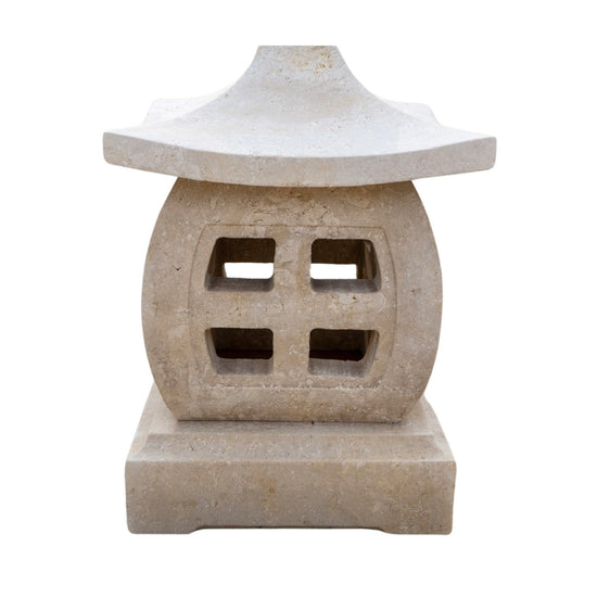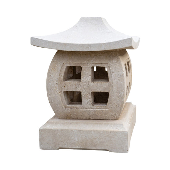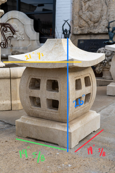 Enhance your outdoor space with our elegant French Limestone Pagoda Lanterns. These midcentury lanterns, crafted from high-quality limestone, exude a professional and sophisticated vibe. Sold individually, each lantern boasts a traditional pagoda-style design and can hold various lighting fixtures to illuminate your surroundings.