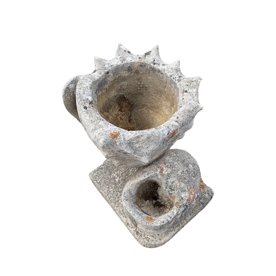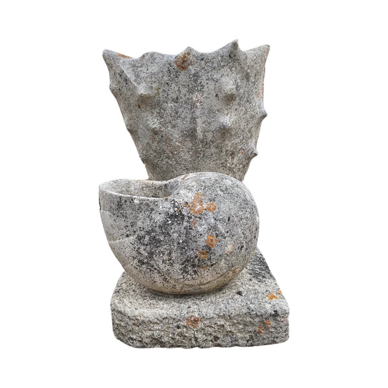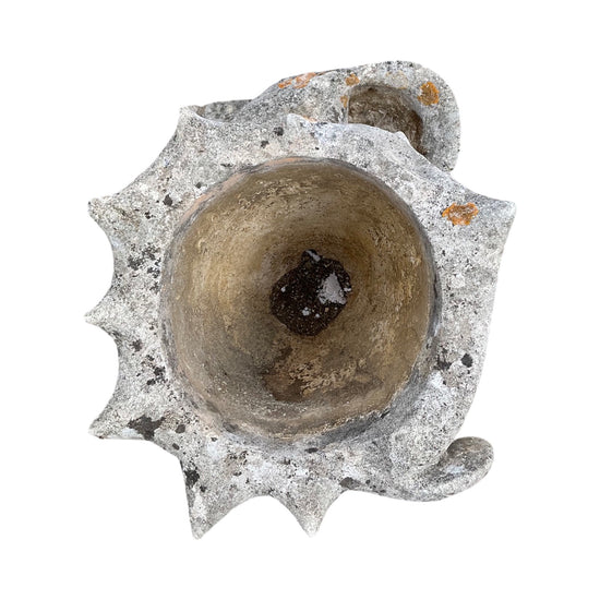 This French Limestone Shell and Conch Planter is a one-of-a-kind piece of 17th-century art. Carved from limestone, it features two basin holes for planting. An elegant representation of shells and conchs, this beautiful planter will add a timeless touch to any interior.