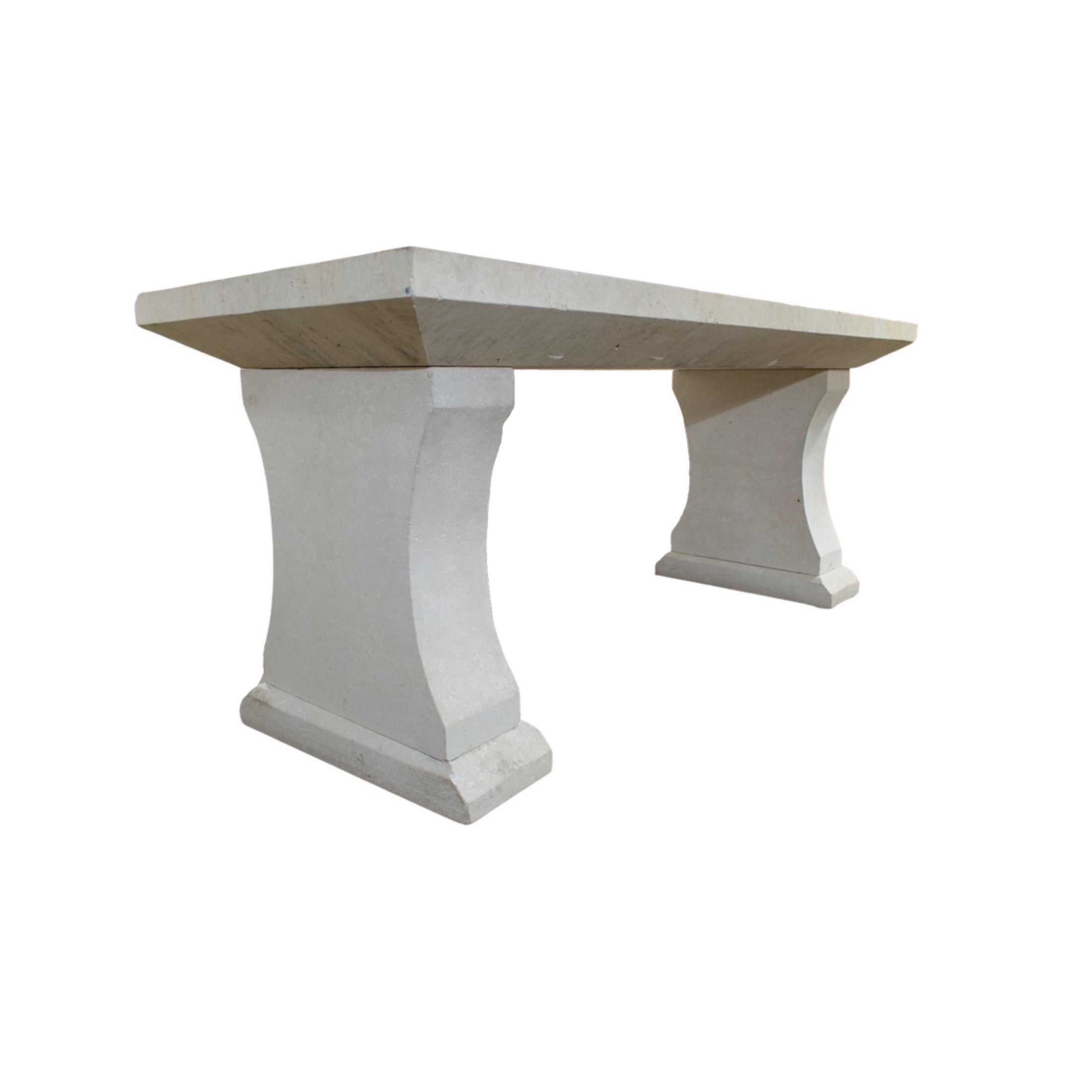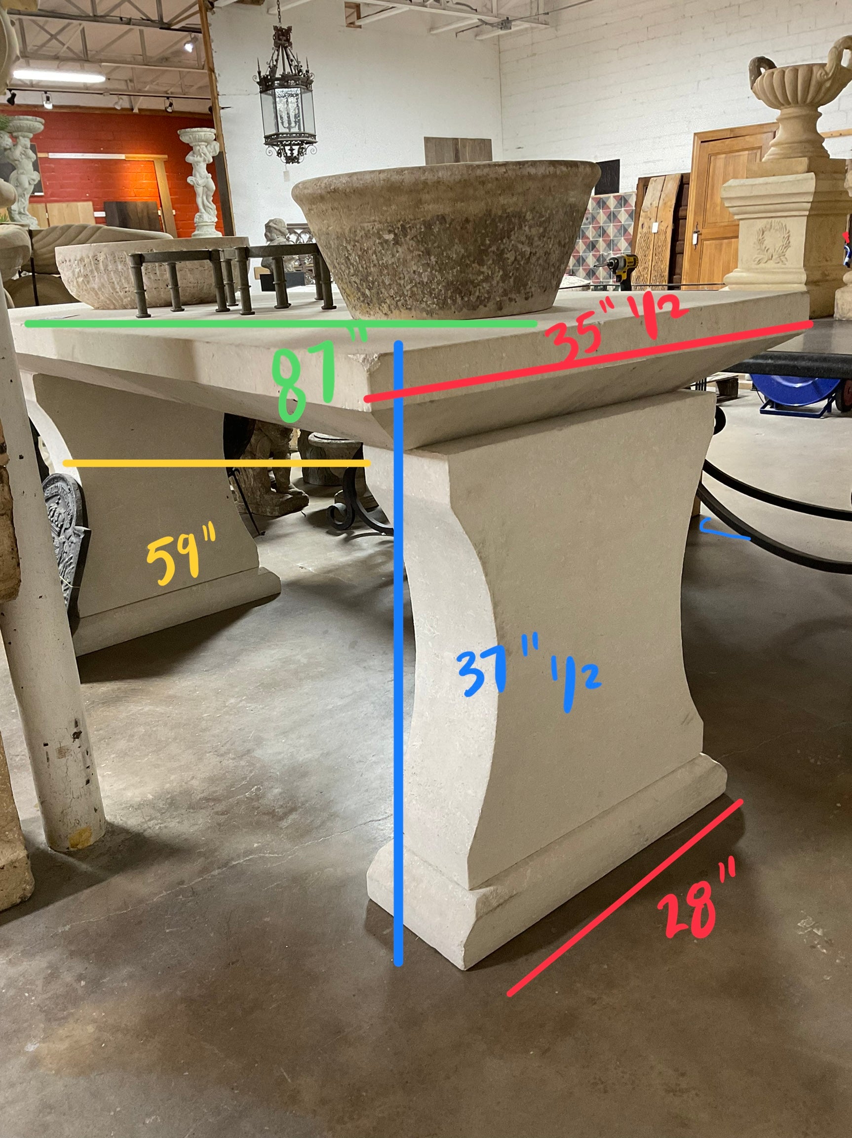 a hand-carved contemporary limestone table. Originates from France. Circa, early 2000's.