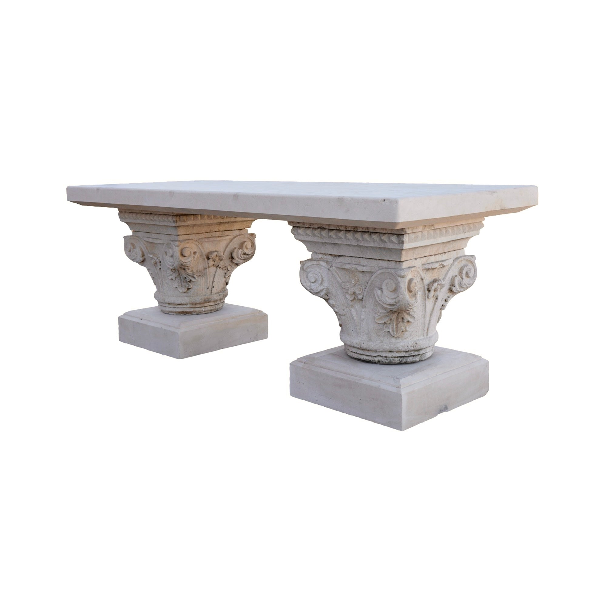Bespoke Contemporary French Limestone Table with Antique Pillars (T-BAWD)