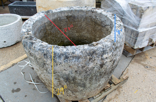 This high-quality 1750 French Burgundy Limestone Planter is handcrafted from natural limestone sourced from Burgundy, France. Its beautiful design and remarkable strength makes it an ideal choice to house plants, indoors or out. Its unique textures and natural patina will add a touch of elegance and luxury to any home.