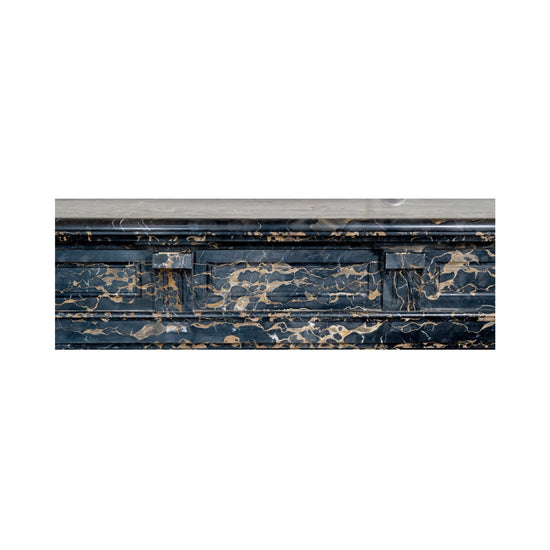 Crafted from luxurious Portor Nero marble and designed in the timeless Louis XVI style, this French-made mantel exudes elegance and sophistication. Dating back to the 1880s, its low line silhouette adds a touch of modernity to any living space. Elevate your home decor with this exquisite marble mantel.