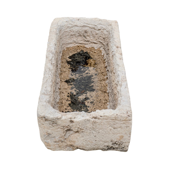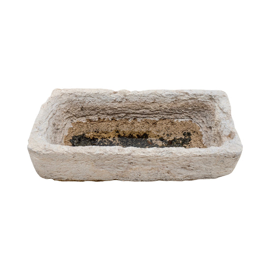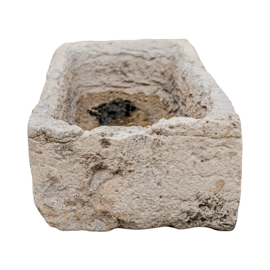 An antique French limestone trough, circa 1850. Rectangular in form with aged surface wear and patina, this small-scale piece carries the character of time. Reclaimed and versatile, ideal for use as a planter or garden feature.