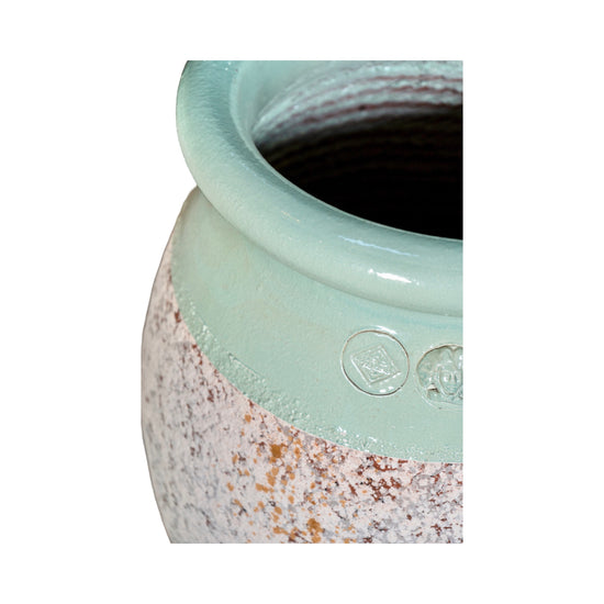 Handmade in France, this olive jar blends contemporary craftsmanship with old-world character. Each piece is shaped by hand, guided by the potter’s inspiration, and finished with a verdigris enamel collar and soft firing patina that give it a timeworn charm. Stamped with the maker’s seal of authenticity, it’s a timeless addition to both indoor and outdoor spaces.