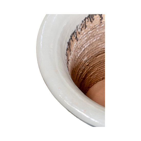 A contemporary vase-style planter from France, handcrafted from terracotta and finished with an ivory enamel glaze. Inspired by Art Deco design, it reflects the French pursuit of harmony between modernism and tradition. Made using the traditional rope-thrown technique, each piece embodies artisanal craftsmanship. Suitable for both indoor and outdoor use.