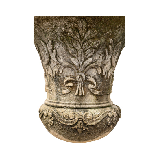 This reclaimed Italian Limestone Planter with Base offers a stunning and intricately designed piece for your outdoor or indoor gardening needs. Made from limestone, this planter boasts a unique floral and arch lining carving, adding classic charm to any space. The two separate pieces can be separated, but together, they create a beautiful vessel with a base design from the 1880s.