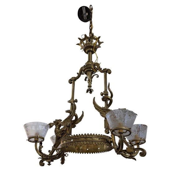 This bronze & crystal chandelier with 4 lights origins from France. 19th century period.