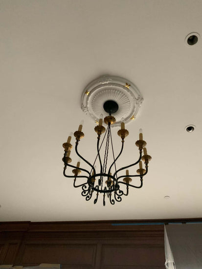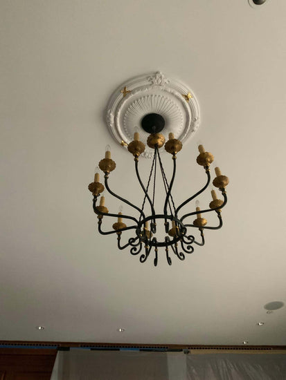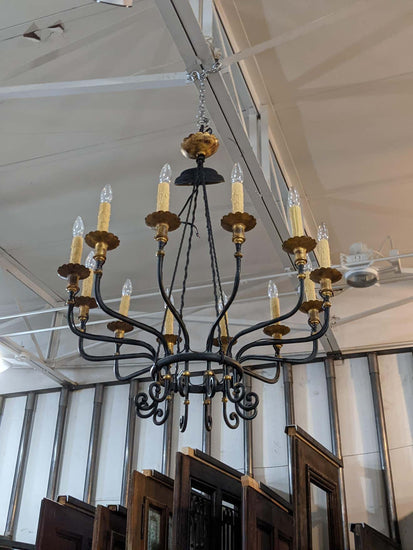 This bronze chandelier with 12 lights origins from France. 19th century period.