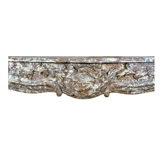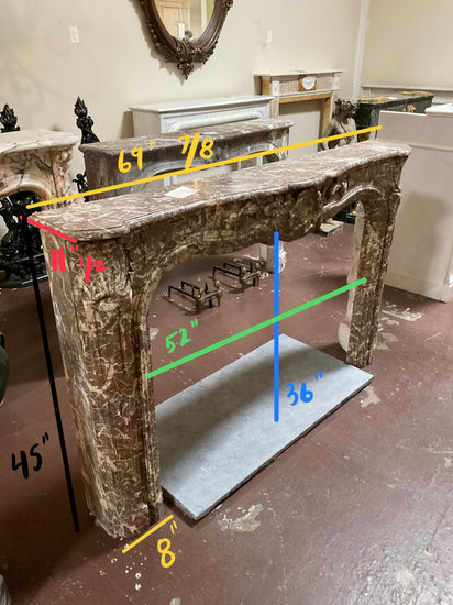 Expertly crafted in the 1820s, this French Ardennes Grey Marble Mantel exudes elegance and sophistication. Its Louis XVI design features a carved motif in the center and on the mantel legs, adding a touch of opulence to any room. Made from Ardennes Grey Marble, this mantel is both luxurious and durable.