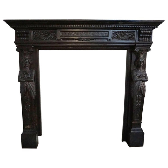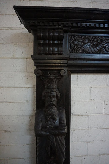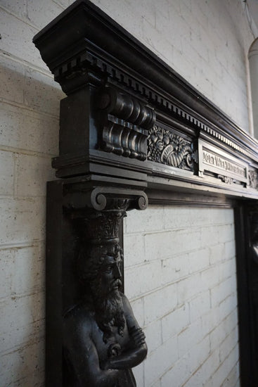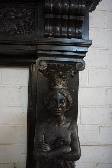 Renaissance Bluestone Mantel Depicting the King and Queen of Belgium. Features detailed carving of the King and Queen of Belgium, circa the 1600s. This Belgium Polished Bluestone Mantel is made from a durable, natural bluestone that has been polished for a fine finish. This will create a perfect conversation piece to your home or office and will last a long time!