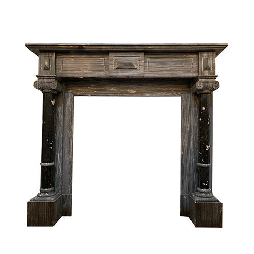 Grey and Black Antique Marble Mantel. Originates from France circa 1860.