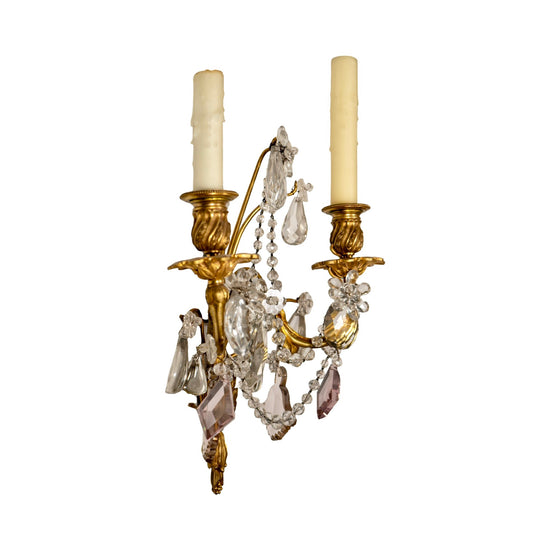 Pair of Antique French Bronze and Crystal Wall Sconces (L-PGAC)