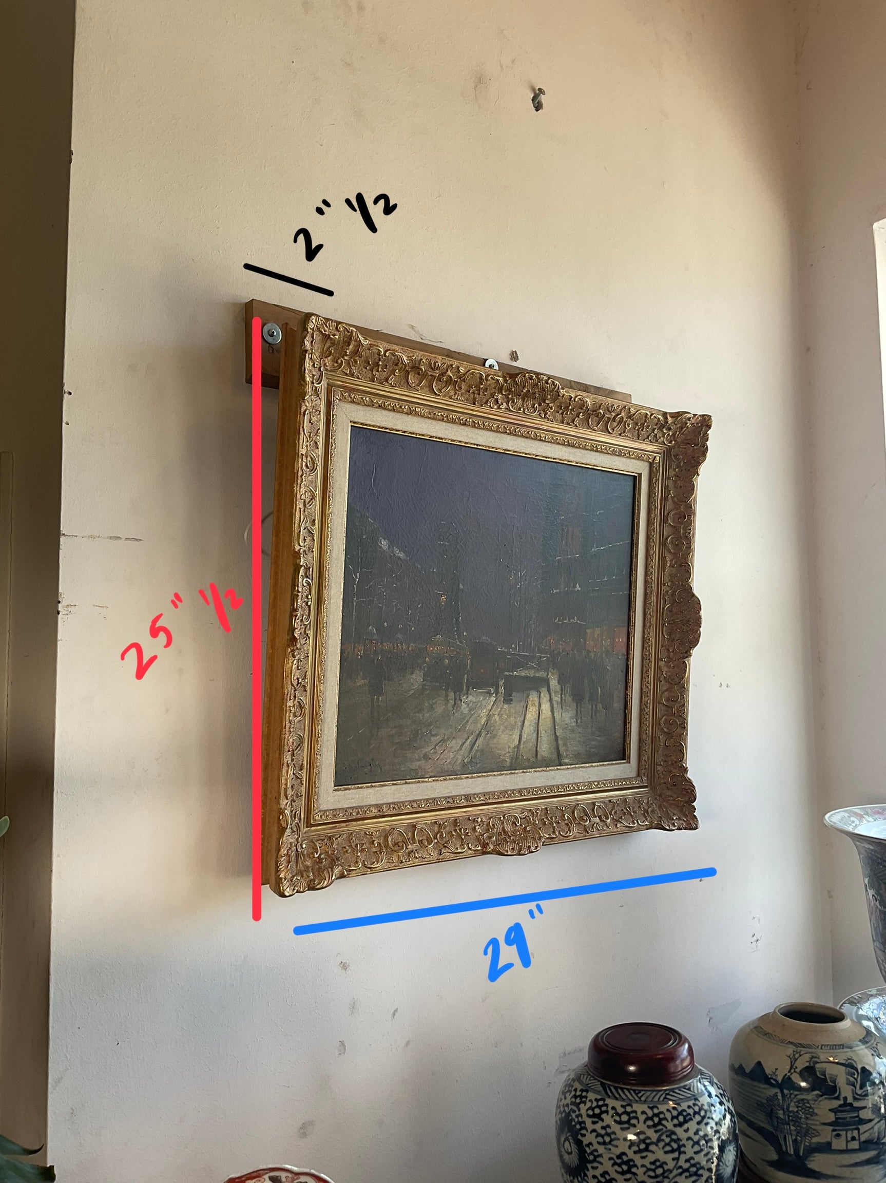 This "Paris Le Soir" oil canvas painting by Paul-Marcel Candies Balmiere captures the beauty of the city at night. Created in 1938, this piece features intricate carvings on its wooden frame and is signed by the artist. With a pre-installed wall hook, it's ready to be displayed and admired.