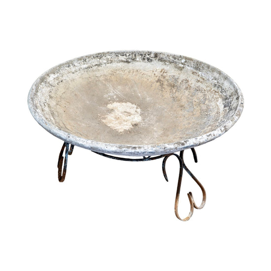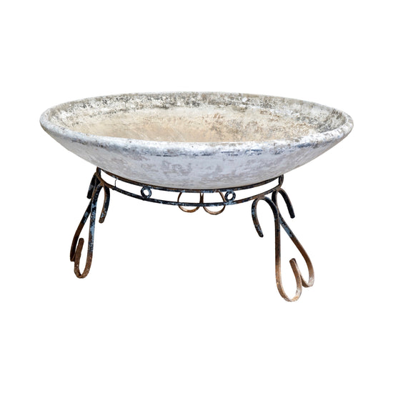 Add a touch of mid-century modern style to your garden with this Swiss Saucer Planter by Willy Guhl. Made in Switzerland out of durable fiber cement, this unique planter features a pre-drilled hole for easy drainage and comes with a tri-stand iron base. A true eye-catcher that will elevate your outdoor space. Circa, 1950s.