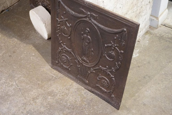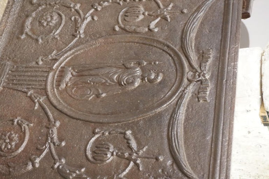 This Louis XV-style antique fireback originates from France circa the 1800s. Square shape and made of iron.